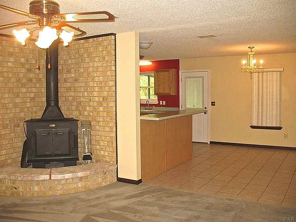 MOVE IN READY!! Immaculate home.. Updated Kitchen with NEWER CABINETS include 2 LAZY SUZANNE'S and countops, built in DESK and FILING drawer with slots for mail. All kitchen APPLIANCES included, nice pantry, BREAKFAST BAR, TILE and window overlooking pristine backyard. Formal Dining room open to Kitchen and Living room. Living room has a BLACK BART HEATING system, wood burning will keep the house warm on those cold winter nights. Cushion and seating around Stove if you need to warm up. TILE in all wet areas, Laundry room with 55 gallon WATER HEATER, oversided laundry room. All bedrooms have walk in closets. Master Bath has 1 sink with VANITY area for chair, Large walk in closet, separate room with updated SHOWER with seat and energy efficient toilet, Guest bathroom also has newer tub and shower. Beautiful screen BACK PORCH overlooking manicured yard with TREE LINED buffer and NO NEIGHBORS behind you. Side load 2 car garage, 2 doors with their own remote, with additional 6.6 x 7.3 room, additional 2 CAR GARAGE with workshop perfect home for HIM. Pull down stairs to the attic, newer RHEEM A/C, HURRICANE SHUTTERS, all Windows have been replaced. Large tiled FOYER with STORM door and 10 x 25.5 front covered PORCH, Light and Bright. 2 mature PECAN TREES in the front yard, previous owner had more than they could use each year.. This home has so much CURB appeal and PRIDE of OWNERSHIP, the previous owners took excellent care of this beautiful home. This house will sell FAST....