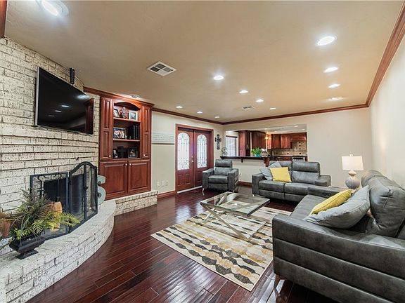 Carl Albert Schools!! Super nice home with lots to offer! Living, 2nd living, dining, formal dining, and/or a room for an office! Main living area is large living with a cozy brick fireplace and built-in bookshelves and cabinet space! Wonderful kitchen with built-in stainless steel appliances and granite counter tops! Large master with a master bathroom that offers his/her vanities, as well as his/her closets, jacuzzi tub and stand up shower! Secondary rooms are connected by a jack-n-jill bathroom! Granite throughout -- including window seals!! Real hardwood floors in both living and dining areas! Lots of storage and built-ins throughout! Awesome Carrier Infinity Touch HVAC system with a built-in humidifer and offers 6 zones (A/C portion new in 2019) -- the garage is even heated and cooled! Storage building outside, with a large deck around it (part covered)! Dog kennel and small garden in well manicured backyard!