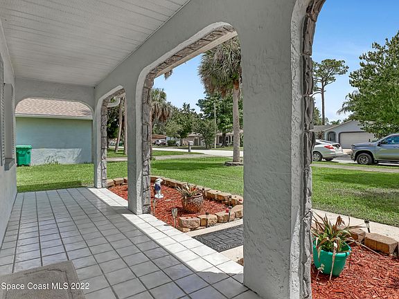 Check out this concrete block home in a quiet established neighborhood. Desirable split plan, 3 bedrooms, 2 bath with a 2 car garage. Family room with cathedral ceilings leads to screened in patio overlooking fenced in yard. Updated showers.Freshly painted inside. Newly done textured ceilings. Roof is 2019. Walk to the park. Conveniently located by shopping, dining and major highways. Close to beaches and Port Canaveral cruise ships and dining. Easy commute to Orlando airport and attractions.