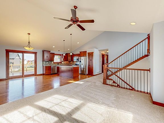Welcome to this beautiful fully finished 5-bed, 3-bath home, with large foyer and 3-stall garage nestled in the desirable Hart Farms community. Enjoy the open-concept layout with vaulted ceilings, perfect for entertaining, with a spacious living area, dining room, and modern kitchen with island and pantry. The third level primary suite offers some peace and quiet with a luxurious en-suite bathroom with double sink vanity, soaking tub, separate shower, and walk-in closet. Relax and unwind in the lower-level family room, featuring a cozy gas fireplace and a wet bar for entertaining guests. Step outside to your fenced backyard and enjoy the fresh air on your private deck or soak in the hot tub with saltwater system. Only a 5-minute walk to Hart Farm Park, and an 8-minute walk to the Rochester city bus line, loop 314. Mayo employees receive free pass to ride the bus to the Mayo campus for free! Located 2.5 miles from shopping, and 6 miles from Mayo Clinic in downtown Rochester. Brand new carpet & fresh paint throughout!