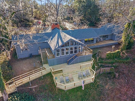 Homes located on this high bluff above the Waccamaw River are rarely on the market. With 300 feet of direct Waccamaw River frontage, a private boat dock, and this amazing view, it's the place your dreams are made of. Situated overlooking the river on the back of this 2.77 acre lot with NO HOA, this home feels like a private cabin in the woods. The wood exterior home his accessed with a private circular driveway that is surrounded by mature landscaping that includes camellia bushes and azaleas. There is an immense amount of newly installed decking and walkway access to the boat dock. Inside, the home has many windows that take advantage of the stunning river views that are in almost every room. Wide plank wood floors,  a fireplace and spacious rooms make you feel like you're enjoying a luxurious getaway or retreat. This home, all on one floor, features a split bedroom floor plan, an amazing Carolina room off the back the home with spectacular river views, a formal dining room, and a detached storage building. The homeowners have owned this home for 20 years and have never had any flooding! When you see this home, you'll see why! The sellers are also offering a 1 year home warranty to the buyer!  Take a look and make plans to enjoy life on the river!