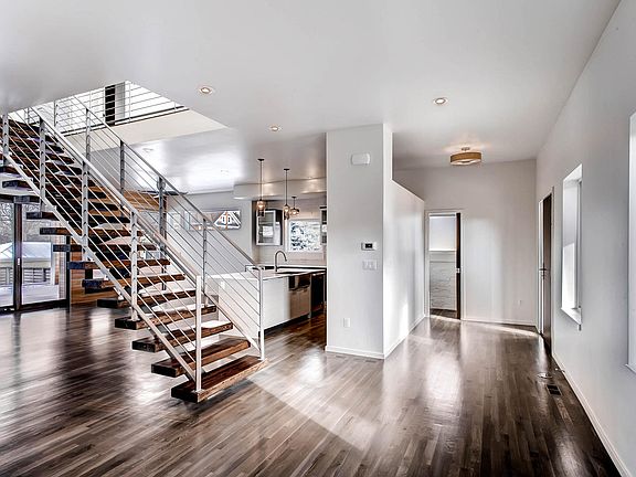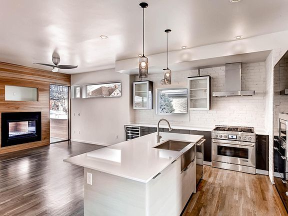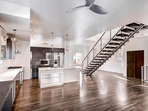 This urban farmhouse in fabulous LoHi is tucked away among Denver's best restaurants, shops and entertainment! Award-winning Meridian 105 Architecture. Floating staircase with open tread metal spine, open floorplan, double-sided fireplace wall, rich hardwoods, exposed brick and designer lighting complete the main level. A covered patio takes center stage with the indoor/outdoor connection offering a built-in BBQ, outdoor dining & living room and hot tub. Tall fencing and professional landscaping creates sense of privacy. The modern kitchen boasts luxury Jenn-Air appliances, soft close European-style cabinetry, large center island and wine fridge. The spacious Master suite has five piece bath & custom closet. Architectural details delight the 2nd level with vaulted ceilings, skylights, two additional ensuite bedrooms and covered patio offering sublime city views! The finished basement has an additional full bedroom, bath and rec/media room. This is designer living at it's best!