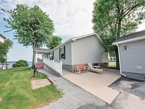 Year-round 3 bedroom, 2 bath well insulated home in pristine condition situated on Lake Ontario. The lot is spectacular with a peninsula that provides you with 100+ feet of waterfront. In the evening, pull up a chair & enjoy the spectacular show that Mother Nature puts on as the sun sets. Simply beautiful. The waterfront is perfect for swimming, boating, kayaking etc. Inside the home you will love the open kitchen, dining room and living room. All with a great view of Lake Ontario. The laundry room has plenty of cabinet space and a sink. When you don't want to deal with the laundry, just close the door, out of sight out of mind. The wrap around deck is perfect for relaxing. If you like to tinker go to the large shed in the back lot, tinker away! Also 2 car garage & stand-by generator.