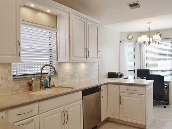 It doesn't get any better than this for a MOVE-IN ready home at a fantastic price! Updated home on sparkling lake lot w/fenced yard & screened porch. White, eat-in kitchen w/quartz counters, marble backsplash, lazy susan, appliance ''garage'' & stainless steel appliances. Stove & garbage disposal < 1yr.old. NO POPCORN CEILINGS! New carpet, AC, fans, lights & 2nd bathroom 2014. Master Suite has walk-in closet, double wood vanity and large shower with nice tiles. Plenty of room to play, BBQ & entertain both inside & out. Pet friendly & all ages welcome. Rentals are restricted: No renting 1st 2 years & only 10% of the community can be rented at any given time. (8 homes). Community pool, cable & common areas included in HOA fee. Fabulous schools. PLEASE: Exclude soft window treatments & rods.