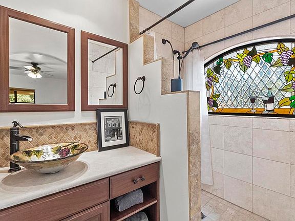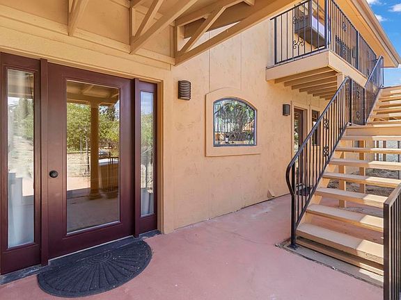 Breathtaking Mountain Home Retreat on 5+ Acres with Stunning Views! This home offers 4 bedrooms, an office, and a bonus room. The downstairs entrance through the carport will lead you to a charming bedroom with an ensuite and direct access to the yard. The downstairs hallway features closets/storage, a laundry room and two additional bedrooms. One of the bedrooms provides access to a bonus room with an additional closet and a fireplace. You can enjoy the beautiful view with direct access to a private patio, where you can hear the sounds of the running water feature. You can also access the home from the exterior stairwell that leads to a deck with breathtaking views. The living room boasts large windows that showcase the stunning mountain views, a cozy fireplace that is perfect for chilly nights, and an open kitchen that was recently updated for entertaining. There is also an office, perfect for those who work from home or need extra space for hobbies. The primary bedroom with a private bathroom is also located upstairs, which was recently remodeled. The primary bedroom features a large walk-in closet and an additional closet for any additional storage needs. This home is equipped with central heating and AC controlled by Nest, ensuring that you are comfortable year-round. The home also features solar panels with 3 Tesla batteries, making it energy efficient and environmentally friendly. Step outside to your own private oasis. Enjoy the beautiful mountain scenery from one of the home's private decking areas, recently upgraded to trex. The 5+ acre property has numerous fruit trees, 2 wells, fencing, gated access, 2 carports, and 3 storage buildings. The storage building near the lower carport and the Quonset hut have concrete flooring and 220 amps. There is a poured slab for RV parking and a level pad below the main home with a separate driveway, possible use as an additional home location site. This home is perfect for those who love the outdoors. The property features hiking trails and is located near popular outdoor destinations such as Lake Cuyamaca and Mount Laguna.