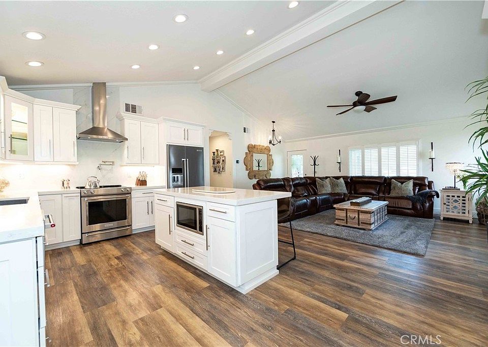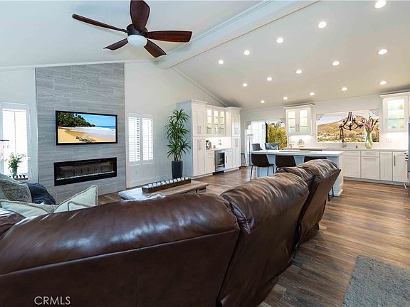 Welcome home to 23296 Clipper Ct. in Canyon Lake. This immaculate & stunning 3-bedroom 2 bath home has been updated from ceiling to floor. Brand new kitchen, flooring, bathrooms, paint inside and out and new gorgeous stone on the fireplace. As you enter the home you will be instantly greeted with charming wood look flooring, fresh paint and an abundance of natural light. The kitchen is stunning with NEW white cabinets, white quartz counters, stainless appliances and a huge island perfect for entertaining or the home chef. The great room, adjacent the kitchen is spacious with a gorgeous stone fireplace. The enclosed sunroom adds an extra approx. 415sf of living space to this already spacious home. This home boasts amazing views of the city, mountains & the lake. This home sits on a quiet cul-de-sac has boat parking and a driveway with plenty of room to park. This is an incredible find so call today for your private showing. Take a look and fall in love!