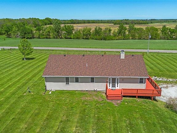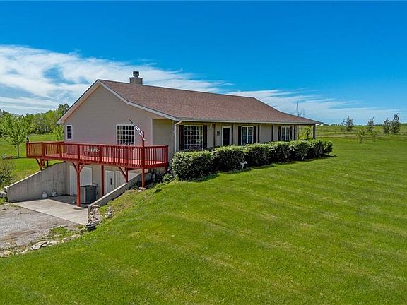 Daviess County, Missouri, a sprawling 19.4-acre m/l property, with black-top frontage. A charming, 3-bedroom 3-bath, ranch-style home with a detached 4-car garage, and various auxiliary buildings. A spacious ranch-style home with a finished basement. NEWER ROOF has been completed on the house. The open-concept living area and large windows flood the space with natural light. A stone fireplace serves as the focal point, providing both warmth and ambiance during chilly evenings. The kitchen is equipped with high-end appliances, custom cabinetry, and oyster shell backsplash that reflects the surrounding room colors. An adjacent dining area provides the perfect setting for intimate gatherings and family meals. The master suite offers a peaceful retreat, complete with en-suite bathroom and ample closet space. Two additional bedrooms and a full bathroom accommodate family and guests. Adjacent to the main residence stands a detached 4-car garage. The spacious shop area provides ample room for woodworking, automotive projects, or any other creative pursuits. A dedicated office space offers a quiet environment for remote work or personal projects. Embracing sustainable living practices, both the main residence and the detached garage are outfitted with solar panels. This eco-friendly feature not only reduces utility costs but also minimizes the property's carbon footprint. One of the property's unique features is a recently built off-grid cabin, overlooking a tranquil pond, offering seclusion, reflection and relaxation. This charming retreat presents an exciting income opportunity, whether utilized as a vacation rental or private getaway for nature enthusiasts. With a rustic design, the cabin appeals to those seeking an authentic rural experience. This picturesque property provides a sanctuary for those seeking a simpler, more connected way of life amidst the beauty of the Missouri countryside. Prior Inspections have been completed and are available.