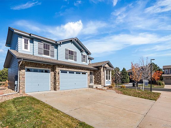 PRICE IMPROVEMENT!! Welcome to this beautiful 5-bedroom, 4-bathroom home, lovingly maintained by the original owner and ideally positioned on a spacious corner lot surrounded by mature trees for added privacy. Thanks to the home’s desirable south-facing orientation, you’ll enjoy abundant natural light year-round and minimal snow shoveling in the winter. Perfectly situated within walking distance to Frontier Valley, Cimarron, and Legend schools, this home offers an exceptional location in one of Parker’s most sought-after neighborhoods. Step inside to discover a bright, open-concept main floor designed for both comfortable everyday living and effortless entertaining. The chef's kitchen showcases stainless steel appliances, granite countertops, and ample cabinetry, flowing seamlessly into the dining and living areas. A main-floor office or flex room tucked at the back of the home offers privacy and versatility—perfect for remote work, a playroom, or a quiet retreat. Upstairs, unwind in the spacious primary suite featuring a five-piece ensuite bath, complemented by three additional light-filled bedrooms. Recent updates include fresh interior and exterior paint, new carpet upstairs, and a new hot water heater, making this home truly move-in ready. The finished basement expands your living space with a large recreation area complete with a pool table, a guest bedroom, and generous storage. Step outside to your own private backyard oasis—an expansive outdoor space with a stamped concrete patio, and pergola, perfect for entertaining, dining al fresco, or relaxing under the stars. The three-car garage offers plenty of room for vehicles, storage, and hobbies. Residents enjoy access to Canterberry Crossing’s clubhouse and pool, along with nearby parks, trails, and top-rated Douglas County schools. Don't miss this opportunity! Check out the virtual tour. Discounted rate options and no lender fee future refinancing may be available for qualified buyers of this home.