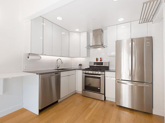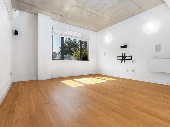 BOM! OHBA WED 1/26 6PM-7PM & SUN 1/30 12-2PM. Reduced price! Own an enormous Greenwood Hts Luxury Duplex for under $2,500 a month. Low monthlies with a 25 yr abatement! Larger than most 1 bedrooms, this Duplex Studio has it all! Sunny and spacious south facing Living Room, great modern Kitchen and baths with quartz counters, full sized in unit washer dryer, a shared roof deck with views of the harbor, and a large private storage unit! 25 Year Tax Abatement keeps monthlies low! At almost 1100 square feet, you have room to spread out and still have extra room in your unit for a home office and a dedicated exercise space. Features multi-zoned Central Air and Video intercom as well as elegant architectural details: 9 ft high polished concrete ceiling, white oak floors, and large picture windows. Stylish wood stairway separates levels for privacy. Stainless appliances by LG and GE, and vented stovetop inspire your inner chef. Elevator building with entrances on either levels of the duplex. Under 25 minutes to city via express trains, with subway entrance and CitiBikes right on the block. You are close to Industry City AND the great restaurants and shops of Greenwood Heights and Sunset Park . PHOTOS ARE VIRTUALLY STAGED.AUDIO & TECH IMPROVEMENTS: HDMI cable, Should support 4K signals.- Left/Right channel in-wall speakers from Monoprice, a solid trusted brand in audio equipment, and work quite well IMO.- Center channel speaker Subwoofer cable (that's the large RCA jack there) -- used to power a small subwoofer if you care about such things. The last thing under the TV is a conduit for a power cable. So you can feed power up behind the TV without seeing a dangling cable. There is also an in wall wire going to the rear-left so to get full 5.1 sound you'd need to have only one visible wire to hide. Full surround speakers. In addition to that, there are gigabit RJ45 Ethernet cables connecting the networking closet (where FIOS/Cable comes in) to the living room and the downstairs area.