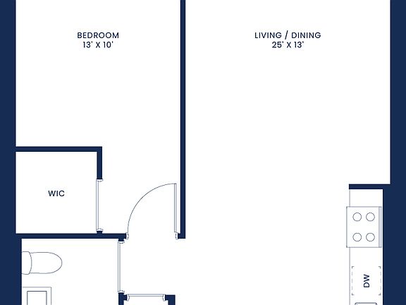 Expansive 1 Bed, 1 Bath featuring a large living room and a sleek open kitchen. This spacious one-bedroom home offers an open, airy layout complemented by a generously sized walk-in closet for exceptional storage and comfort.