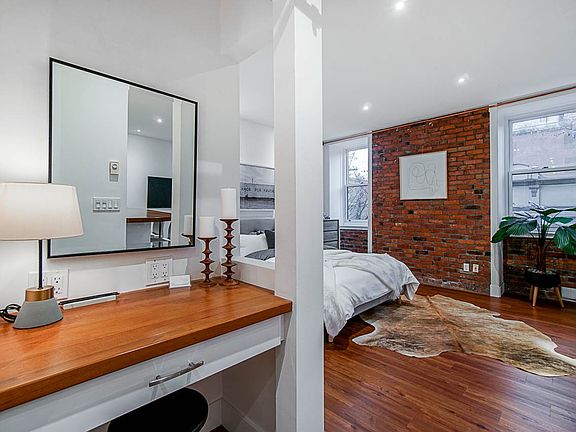 Located in the heart of Gastown, this heritage loft conversion embodies the downtown lifestyle. With a beautiful custom kitchen, a gorgeous fully-tiled bathroom, and sliding walls that reveal a work space, kitchen appliances, and pantry! In the kitchen is an 8' hardwood bar and GEOS counters that sparkle. Currently in a 1 bdrm layout yet the options are infinite. The large windows bring natural light to the home and the deep window wells, over-height ceilings and 27' brick wall just add to the charm of this beautiful Gastown Classic. Originally, in 1911 it was a brick warehouse, but in 1996 it was converted to the loft-style home on this charming street with pretty lights and great eats.