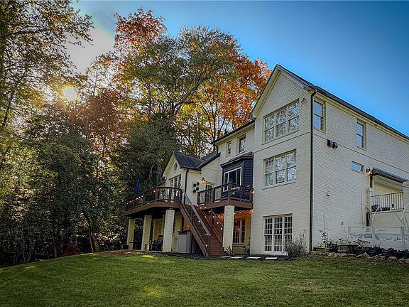 Spanning almost 2 acres of land, the property extends into a lush, private forest in the back, providing both natural beauty and a sense of serenity. The generously-sized rear porch, offering sweeping views of the landscape, becomes an ideal space for outdoor relaxation and gatherings.
