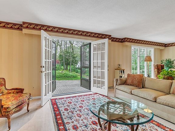 PRIVATE, park-like grounds & EXCEPTIONAL living on picturesque Ardsley Road. This CUSTOM-BUILT home offers INVITING interiors featuring hardwoods & loads of NATURAL LIGHT through expansive windows. Gracious front entry provides sight lines to spacious living/dining room w/wood parquet floors, recessed lighting & French doors leading to both brick patio & covered porch- perfect spots for relaxation & outdoor entertainment. Generous family room has fireplace w/stacked granite surround & custom built in bookcase/entertainment center. Kitchen highlights GRANITE tops, wood cabinetry, center island & eating area. Sophisticated powder room leads to laundry room w/set tub & access to walk up attic for fantastic storage. Private bedroom wing showcases primary suite w/renovated bath, three bedrooms w/double closets plus nicely renovated full bath w/beautiful finishes. Finished lower level offers more living space plus plenty of storage in unfinished area. Beautiful home in PREMIERE LOCATION.
