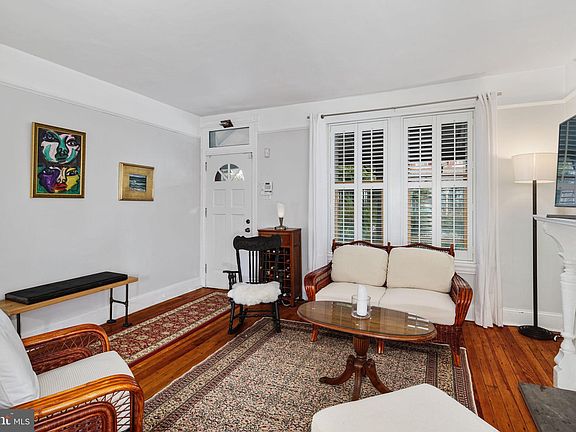 Showings begin Friday evening 10/16. Desirable Chestnut Hill twin located just steps from the Wyndmoor Train Station, on a lightly-traveled section of Benezet Street. A covered front porch caps off the handsome brick facade. Inside, the east/west exposure provides great morning and late-afternoon light to the first floor, and the upstairs floors get nice light all day. Original hardwood floors are throughout. Enter the living room, perfectly shaped for seating arrangements, then into the full dining room. The kitchen sits at the back, with new appliances, and a door to a private patio and large yard ready for fall bulb planting. Upstairs is the primary bedroom and a full bath, with a second bedroom currently being used as a dressing room and closet. On the third floor is a third bedroom and also a fourth bedroom, now being used as an office. The basement is finished and has both laundry and storage areas. This home, full of old-world charm, is convenient to all of the shops and restaurants, is a short bike ride or jog from one of the main Wissahickon Park entryways, and is in one of Philadelphia?s most popular villages.