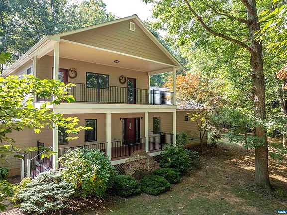 Secluded and spacious home situated on a private wooded 4+ acre property. Rarely do you find a home that offers both privacy and convenience to town! Just a 10 minute drive to historic downtown Staunton and shops, easy access to 81 and I-64. Charlottesville and UVA are only 45 minutes away. As you enter the home, you'll be blown away by the tall ceilings, large spacious rooms and natural light flooding in. A gorgeous custom kitchen with high end appliances, gas cooktop, enormous island, and lots of counterspace and storage. Luxurious Brazilian teak hardwood floors flow through the first floor and bamboo flooring throughout the second floor. There are two primary bedrooms, one on the main level with a large walk-in closet, ensuite bathroom and its own patio access. On the second level, you'll find the second primary with its own porch access. With two large porches and two patios, there's plenty of space to enjoy the peace and quiet. The large back patio is perfect for entertaining family and friends, and the landscaped backyard is perfect for kids and pets. The oversized garage is a car enthusiast's dream or those looking for a home workshop. New Roof installed last year. This home is ready for its new owner to move in and enjoy!