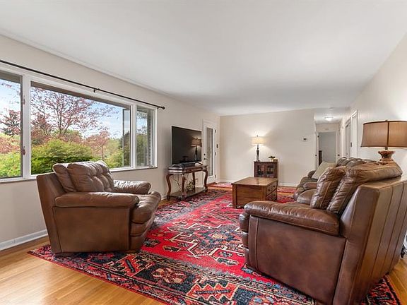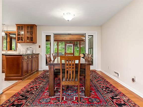 Desirable Mid-Century Modern ranch located in beautiful Bradford Woods. This 3 bedroom, 3 bath ranch is updated and neutral with hardwood floors throughout most of the main level. The large Living Room with fireplace is open to the Dining Room which flows into the kitchen. The updated kitchen features quartz countertops, backsplash, CoreTec Plus flooring and beautiful cherry cabinetry with custom made glass fronts. Accessible from the Dining Room through French doors is the lovely 3 seasons room with porcelain tile floor. The updated hall bath has a vanity with quartz countertops and a tiled shower with frameless glass door. Master has its own private bath. 2 additional nice sized bedrooms. Finished lower level has a FR with fireplace, full bath, storage room. Newer HVAC, gutters and downspouts, bedroom and bathroom windows, interior doors and potting shed. Beautifully landscaped. Located in the North Allegheny SD
