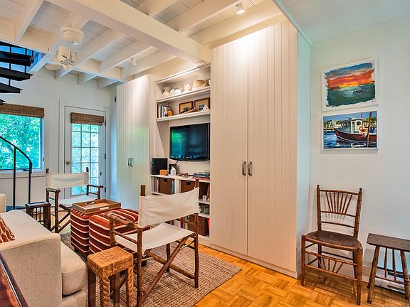 - Features: Recessed Lighting, Living Room, Beamed Ceilings, Built-in Features, Ceiling Fan(s), Closet