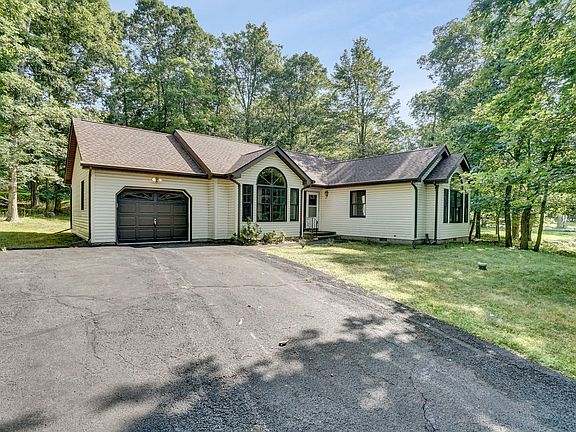 Multiple Offers Received - Please Submit your Highest and Best Offer in Writing by Monday 7/27 at 3 PM! Escape the city to this wonderful RANCH style home in the heart of the Pocono Mountains! Nestled on a private lot in a quiet country setting, this 3 bedroom, 2 full bath home with master bedroom en-suite is light, bright and conveniently located to major attractions like Camelback Mountain Resort, The Crossings Premium Outlets, Kalahari Resort + Shopping and Dining! Step into entry w vaulted ceilings, palladium windows and hardwood floors throughout - zero carpet! Outside, find spacious deck overlooking flat backyard; perfect to relax and listen to the chirping birds. Newer Roof, Central Air system, paved driveway and 1-car garage complete the picture. Make your appointment today!