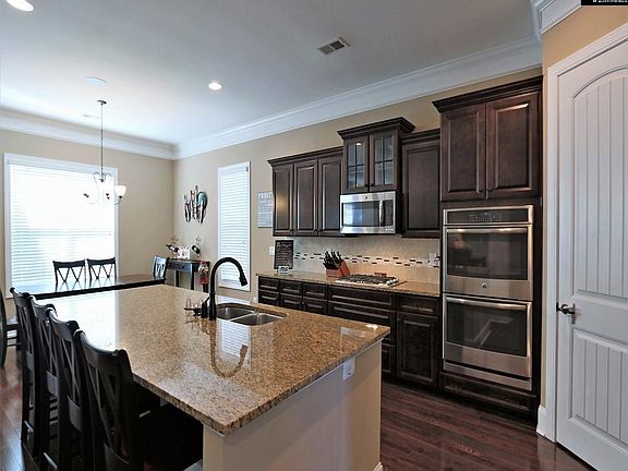 - RoomKitchenFeatures: Granite Counters, Kitchen Island, Pantry, Recessed Lighting, Eat-in Kitchen, Floors-Hardwood, Cabinets-Stained, Bar, Backsplash-Tiled