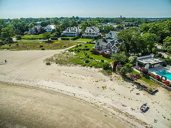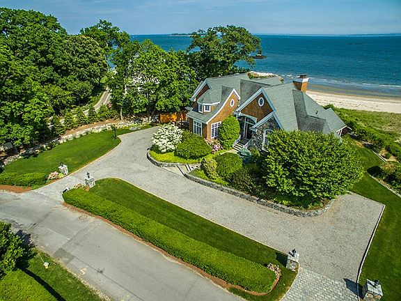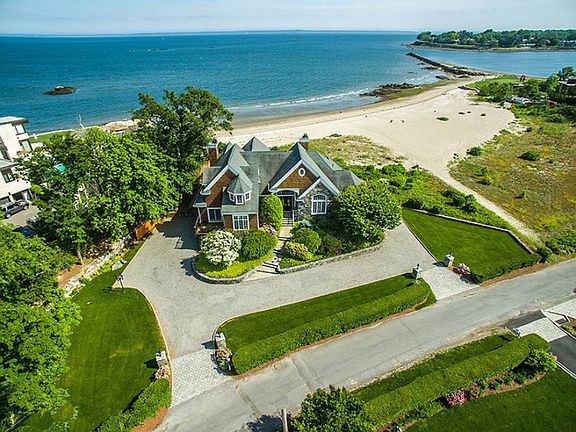 Breathtaking waterfront retreat in the heart of Hawthorne Beach. Private drive leads to prominent custom designed residence on 0.63 shoreline acres. Extraordinary light-filled interior with panoramic coastal views. Dramatic two-story entry and living room, three fireplaces, and French doors to expansive sundeck. Five bedrooms include opulent master suite. Private access to Hawthorne beach and walking distance to Byram Shore Park.