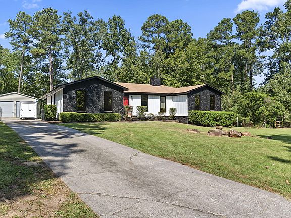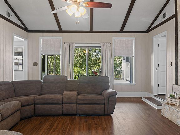 #Charming&Modern A beautifully updated home that blends timeless charm with modern finishes. It is nestled in a well-established neighborhood yet offering exceptional privacy. This stunning residence features freshly painted interior and exterior surfaces, with a striking wood and stone exterior that adds unique curb appeal. Inside, you'll find luxury plank vinyl flooring throughout all common areas, offering durability and style with the look of real hardwood. Plush carpeted bedrooms provide comfort and warmth. The sunken great room is a true highlight, boasting exposed wood beams and a stone-surround fireplace that is perfect for cozy evenings or entertaining. A formal living room, currently used as a den, provides flexible space, while the formal dining room showcases classic judges paneling. The kitchen features a gas cooktop, wall-mounted oven, and freshly painted cabinets, opening into a light-filled breakfast area that overlooks the private backyard. The hall bathroom includes a single vanity and a tub/shower combo. The master suite offers a peaceful retreat with vaulted ceilings, exposed beams, dual closets, and direct access to the rear deck. The en-suite master bath features dual vanities and plenty of storage. Outdoor living is unbeatable here, with a two-tier rear deck, plus both covered and uncovered patio areas that is perfect for entertaining or relaxing in any season. Enjoy extra storage or workspace in the detached 2-car garage, which can double as a workshop or shed. An attached carport adds further convenience. All of this is tucked away in a quiet, private setting that offers the benefits of a neighborhood with the feel of a secluded retreat.