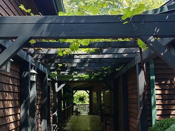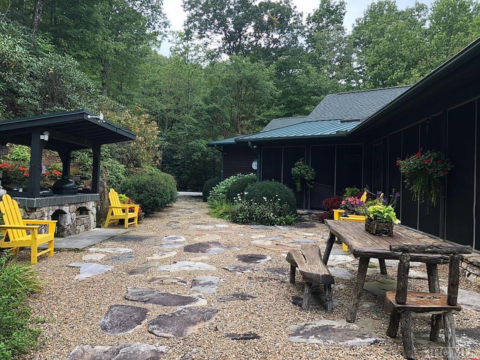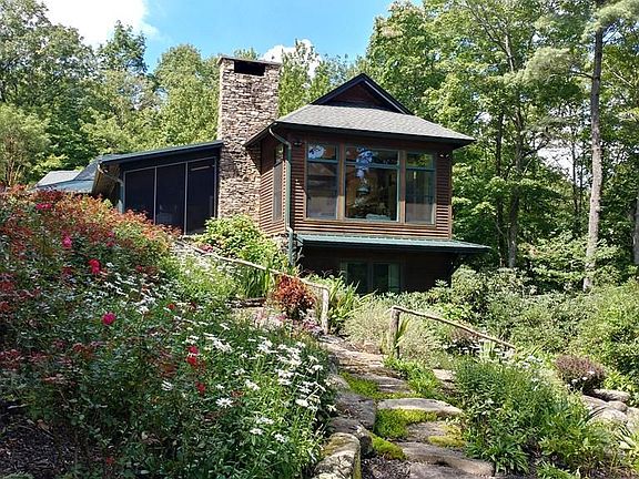 Tucked away off a private wooded drive is a unique mountain lake retreat. The trees and landscape open up to reveal the gardens, a fine yet rustic home, with guest house, arbor and large porch. The picturesque lake glistens below. Framed by a gardeners' paradise...filled with perennials. It looks like a slice of heaven! This is the perfect getaway for two or for a big family. Peaceful and serene. Yet just minutes from activities such as boating and hiking, golf, tennis and more. The interior aviary can also be a tropical greenhouse...or both, if preferred. Rumsford fireplaces anchor the gathering places in the great room and on the roofed screened porch. The kitchen is open, airy and well equipped. This special home is ideal for entertaining. Having a full guest house makes family and friends' stay comfortable and easy for all. There is a hot tub and a generator and loads of storage. The homeowner can enjoy a quiet office downstairs with bookcases and built-ins. And there are extra areas that could be used for hobbies such as pottery or woodworking. Well known architect, Bruce Johnson,has designed this exciting residence to compliment the natural surroundings, and to draw the outdoors inside. The home features rustic beams, reclaimed pine floors, and lots of glass to highlight the exquisite views. A must see property!