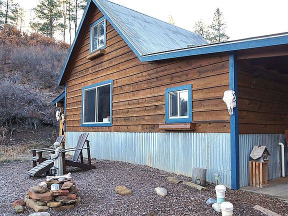 Rustic 2-story cabin on 3 acres, with living, dining, kitchen, bath/utility room, entryway, storage shed, deck. Just west of Pagosa Springs: Approx. driving times to attractions are 10 minutes to Chimney Rock, 10 minutes to grocery store and hospital, 15 minutes to downtown Pagosa and the Hot Springs, 35 minutes to Wolf Creek Ski Area, 1 hr to Durango, 2hrs to Georgia O'Keefe's New Mexico Ghost Ranch, 2 hrs to Mesa Verde, 3 hrs. to Santa Fe. Easy day trips to Silverton, Ouray, and Telluride. An extensive network of UTV/ATV trails is nearby. No HOA! Animals/livestock allowed. Has 1100 gal. cistern, electric heat and wood stove. The cabin is secluded and private but not isolated; there are neighbors all around but not visible. Sits in a meadow surrounded by trees, very quiet and peaceful, lots of wildlife and beauty. Full of wildflowers in season. A second house or tiny home can be built on this property because of the acreage. Wifi is very good. The cabin property is turnkey and comes furnished, including all appliances (W/D, stove, refrigerator, microwave), custom wood furniture, dishes, rugs, towels, etc. and an electric grill for use on the deck. There is a loft bedroom accessed by a pull-down ladder. Besides a queen mattress in the loft, the LR couch is a futon that becomes a full-size bed, and the LR chair becomes a twin-sized bed, so the cabin can sleep 5 people . This is a good place to vacation, for an artist retreat, use as a hunting cabin or rental, or just to live year-round in the mountains.