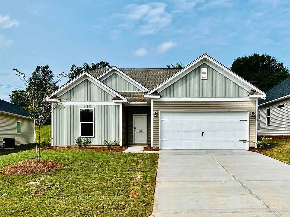 This Santee is DARLING!! Sitting on a beautiful homesite backing up to Greenspace. As you enter the foyer the home is very open...you see through to the great room with soaring 12' ceilings. Open concept with kitchen and family. Beautiful fire place to cozy up to on those rainy days. Master suite with trey ceiling...master onsuite with dual vanity and separate tub and shower. Covered porch with ceiling fan. Beautiful sunlit breakfast nook. This house is perfect. Hurry in to come take a look. House is getting it's final punch out complete...will be 100% and ready to close by mid-end of October 2020.