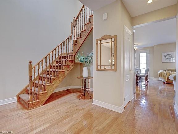 Live in charming sought-after Streetsville! This beautiful freehold townhome with almost 3000 sft of living space boasts a spacious and thoughtful layout with an open concept kitchen, family room, living room and dining room. The updated kitchen features granite countertops, large island with storage, walkout to a deck, built-in desk and open to a bright Family Room complete with a gas fireplace. The Dining Room opens to a sun-drenched Living Room. Hardwood floors through the main level. Skylighted second floor provides ample natural light. The Master features a large walk-in closet and ensuite 5-piece bathroom with glass shower, soaking tub and double sinks. Additional bedrooms each feature plenty of natural light and large closets. Second floor laundry room with sink and main bathroom round out the second floor. Generous- sized finished basement features a bathroom and Rec Room which can also be used as a bedroom with large windows. Walk out to a spacious true double car garage! Ideally located steps to shops, restaurants, schools and GO transit. Walk to the square and trails and enjoy the true charm of Streetsville!
