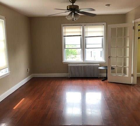 Bright & Spacious 2nd-floor apartment. Private entrance, Freshly painted & very clean. 2 Nice size bedrooms, Living room w/ laminated floor & ceiling fan, separated dining area, updated Kitchen offers extra cabinets, enclosed porch. Lots of Sunlight, Gas Heat!