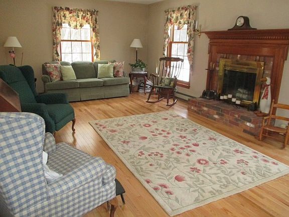 Lovingly maintained, roomy colonial on a well landscaped 1.2 acre lot. Large eat-in kitchen, very spacious living room with new hardwood floors and working fireplace. Formal dining room and a family room with a propane stove and sliding glass doors to a deck and a private big, flat back yard. Master bedroom has great closet space and en suite bath. The two other bedrooms share a full bath. 2 car attached garage opens to a mudroom. Full basement and a 16 X 10 storage shed. Come take a look!