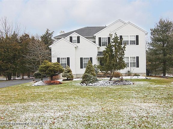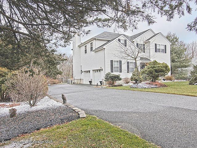 A MUST SEE, Move-in ready, nestled on 2.15 acres, entertain your family in this inviting kitchen, complete with granite counter-tops while watching them swim in the pool or play volleyball during the summer. The master bedroom is an en suite with a walk-in closet, a 2nd bedroom on the second floor is also an en suite. The finished basement boasts a full bath, the basement floor is a SPORT COURT dance floor / impact resistant tile floor for endless hours of fun for the kids, with direct access to the pool area. This home has an alarm system, central vacuum, landscape lighting, underground sprinklers, 2 zone a/c and heat. Home Protection Plan is included. The mailing zip code is Farmingdale, NJ 07727. The Township of Howell estimates the house to be approximately 2,671 sq. ft.