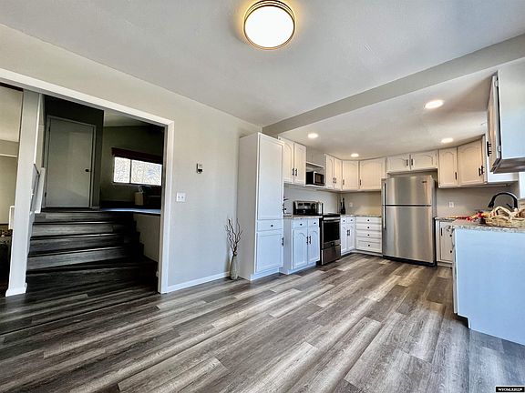 Indulge in all the space, style and comfort you need with this beautifully updated Casper home. With more than 2,700sqft of light-filled living space to enjoy, there is plenty of room for you to move, play and entertain in complete style. There are four large bedrooms (one non-conforming), three bathrooms and multiple living areas to ensure a room for every mood and occasion. The walkout basement has been finished with a gas fireplace and bar and there is also a lovely living room warmed by a second gas fireplace and set under a high ceiling with a rustic beam. In the kitchen, granite countertops are on show while luxury vinyl flooring flows throughout the floorplan. Outside, a sun-soaked deck sits off the kitchen and there is a wonderful fenced yard ready for play. The sprinkler system is not warranted but a two-car garage, a new roof and plenty of storage complete this must-see home.