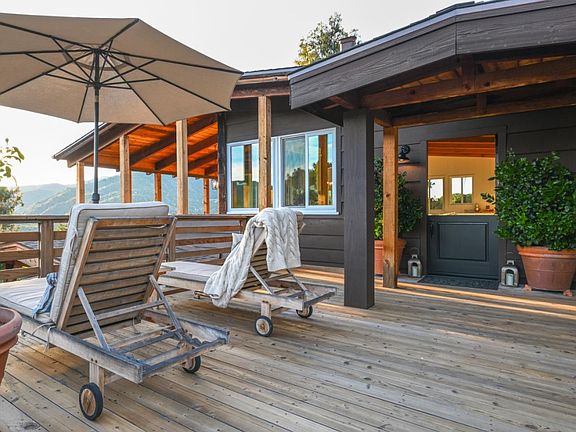Massive ridge beamDramatic architectural timber mantleFrench oak floorsRoom for an airstreamLounging decksKitchen includes carrara marbleFloor-to-ceiling beams
