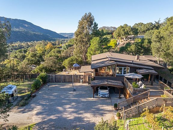 Meticulously remodeled with exceptional craftsmanship combining luxury and flexibility. 233 Country Club Drive offers sweeping east-to-west views of the Santa Lucias, Garland Ranch, and Garzas Canyon from the entire main living space. The main level features 3 bedrooms and 2 bathrooms, anchored by dramatic architectural timber mantle, floor-to-ceiling beams, and massive ridge beam that are rumored to be reclaimed from the historic Esalen bridge in Big Sur, paired with French oak floors and cedar-heart