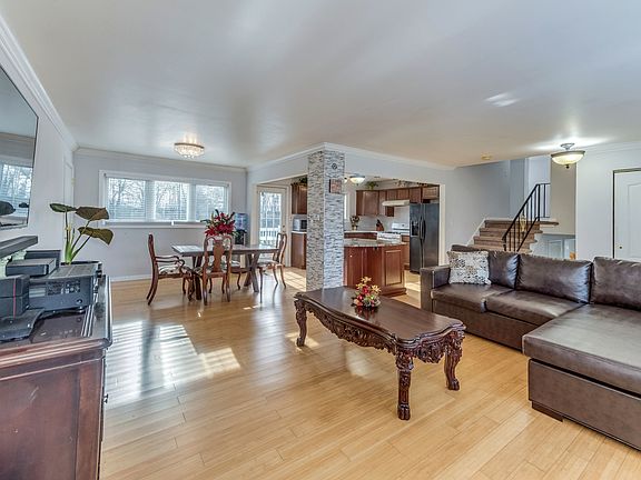 Move in and enjoy this awesome split-level 4 bedrooms/1.5 baths home with the spectacular large back yard and oversized deck! This home boasts ideal floor plan with open layout, remodeled eat-in-kitchen with plenty of cabinet/counter space, opens to dining room. Living room with large window allowing for plenty of natural sunlight, durable bamboo hardwood flooring throughout main level. The second level features 3 spacious bedrooms and bright, fully remodeled bathroom. The lower level has a cozy family room with wood burning fireplace, additional bedroom and half bathroom. Unfinished basement is perfect for storage or for future expansion. Freshly painted walls, hardwood flooring and two panel wood white doors and trims that create a timeless style! Don't miss this one-of-a-kind opportunity!