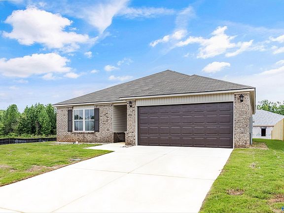 USDA Eligible for 100% FINANCING for QUALIFIED BUYERS. Charming 3-bedroom, 2-bath FULL BRICK home featuring 9 ft ceilings, luxury vinyl plank flooring throughout the main living areas & primary bedroom. The spacious living room offers a ceiling fan & flows seamlessly into the OPEN-CONCEPT kitchen and dining area, perfect for entertaining. The kitchen offers GRANITE countertops & recessed lighting, which continues into the dining room. The primary bedroom incl/a ceiling fan, WALK-IN CLOSET, & en- suite bath. The additional bedrooms offer cozy carpeting & ceiling fans for year-round comfort. This home is MOVE IN READY w/many upgrades! No waiting on a home to be finished. Still under Warranty