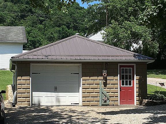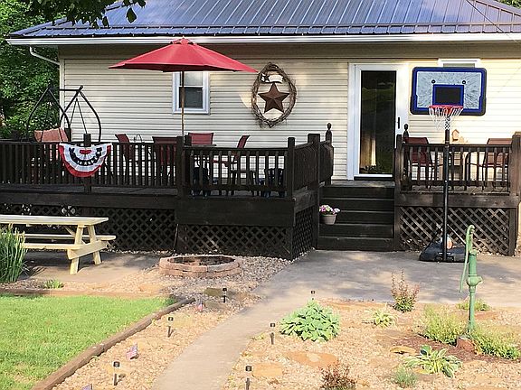 Cozy country-style home located minutes from I-79 off the Mt. Morris exit. Only 8 minutes from Morgantown's University Town Centre with shopping, dining, and ball stadiums. Situated on almost an acre lot overlooking Dunkard Creek which is ideal for fishing and kayaking with a campground-like atmosphere. Dual access driveway. New metal roof on house and garage installed in April 2017. New high efficiency HVAC system installed November 2010. Large spacious unfinished basement for washer and dryer, workbench, and storage. Semi-private road great for walking with a view of the creek. Two large, newly refinished decks on front and back of house great for lounging and entertaining. Two patios in back with a fire pit. This home is great for a starter home, small family, or anyone looking for the ease of a nice one level home.