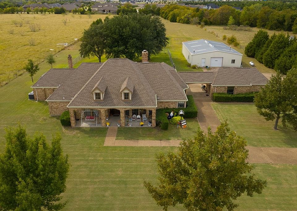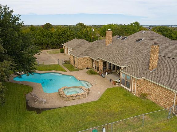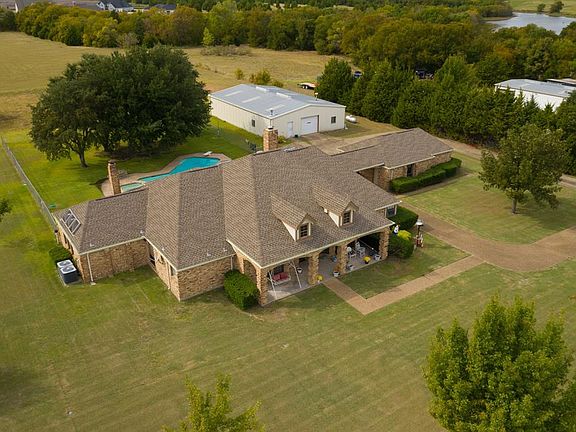 This stately custom home sits beautifully upon 8.7 acres, tucked away from the road behind a hilly landscape, towering trees, & fishing pond. The open layout, vaulted ceilings, & custom touches throughout has made life here comfortable & interesting for the owners ever since they oversaw its construction, & they've done nothing but refine it since. The whole house revolves around the cathedral-like living areas; the owners prioritized get-togethers and the flow of this home reflects that. Unlike a lot of homes on acreage, this was thoughtfully positioned to allow for a massive barn & diving pool overlooking the pastures out back & a driveway among lush greenery out front, making for an great first impression.