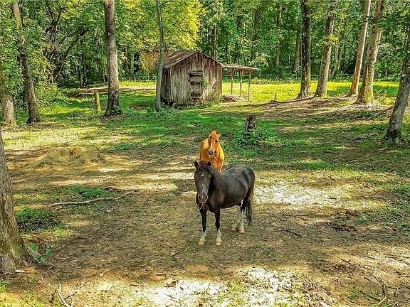 This property features a cozy three-bedroom house with a basement, a detached two-bay garage, a barn, and a fenced area for horses. Enjoy the outdoors with a firepit area and a garden and an abundance of flowers on the property, perfect for those who appreciate both comfort and rural living.