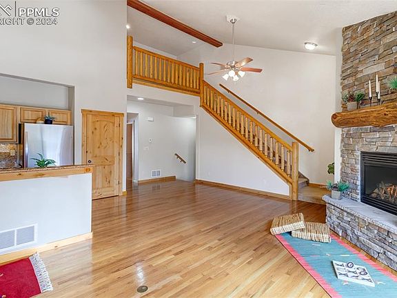 Welcome to the good life in Woodland Park, CO. This beautiful and perfectly maintained townhome sits nestled on the East side of Woodland Park for easy access and availability. The community is close knit and boasts pride of ownership on the single units as well as the complex on the whole. This home is one of the largest in the development and offers 3 bedrooms, 4 bathrooms, a large 2 car garage plus a private 'Man Cave' or Media room with a 1/2 bath on the lower level. The upper main level has the perfect 'Great Room' layout with a dining room, living room and gourmet style kitchen. THe kitchen features plenty of cabinets and counter space, pantry, gas stove and stainless appliances. The bright yet cozy living room has a floor to ceiling stacked stone gas fireplace and a walk out to a deck showcasing a stunning Pikes Peak View. This level also hosts the Primary Bedroom with an attached 5 piece bath including dual sinks and a garden style tub. Upstairs, you will love the bonus loft space which makes the perfect location for a home office or gym. You will also enjoy two additional bedrooms and a full bathroom. A great layout for family or guests. The front deck is a great for the sunshine and Pikes Peak views! And, once the sun goes down, and you are looking for a little solitude and serenity, check out the back deck with an inset hot tub, wall mounted TV and cozy firepit. It's the perfect place to end your day while watching the wildlife roam on the open land. This property is convenient to all amenities and necessities. Easy access to Highway 24, only 75 minutes to Denver, 15 minutes to Manitou Springs and 75 minutes to Breckenridge. It is the perfect mountain home and retreat.