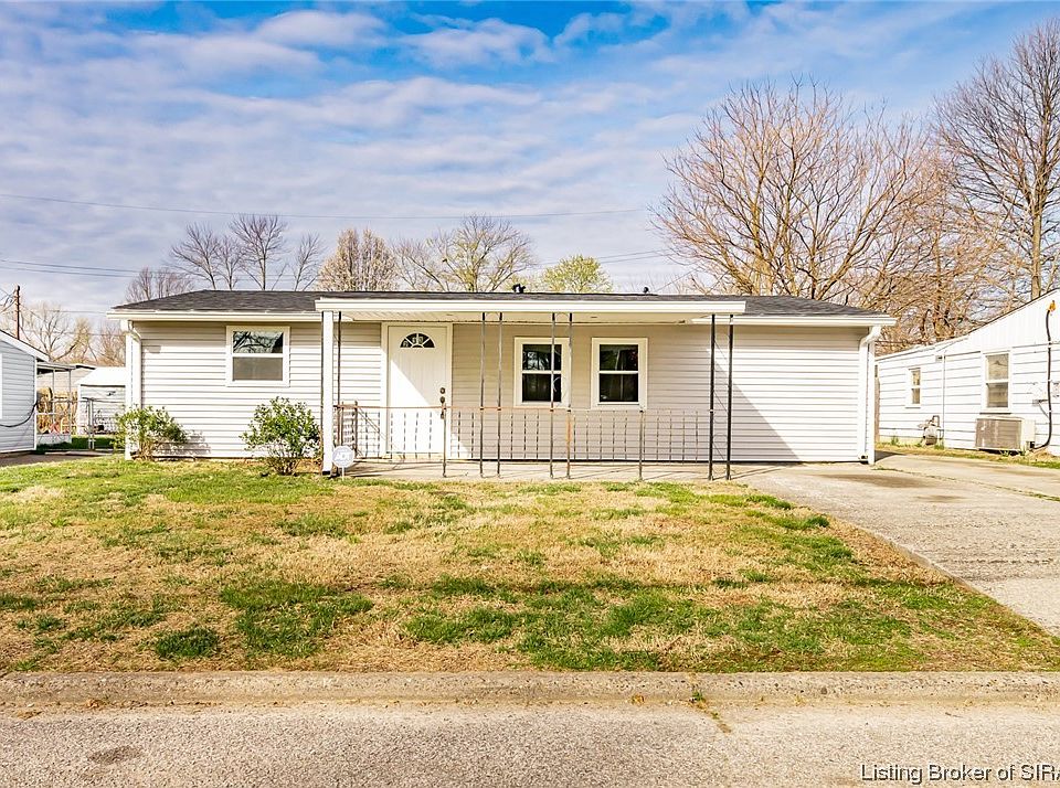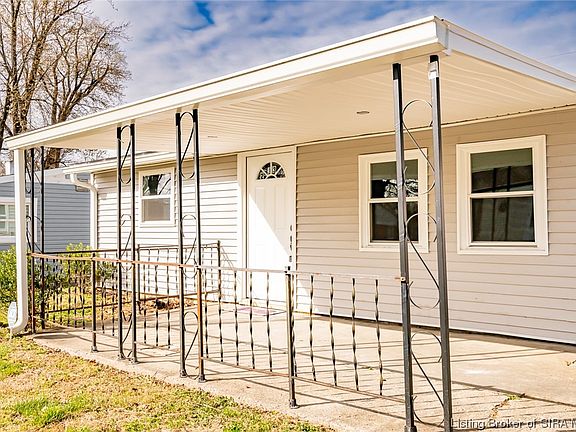 100% financing available to qualified buyers! Come check out this totally remodeled home with an oversized 1 car detached garage and priced under $150,000! Ready to move in! New roof! New siding! New windows! New HVAC! Open floor plan! Updated kitchen and bathroom! New flooring! Fresh paint! New light fixtures! Great location with easy access to all of Southern Indiana and Kentucky! The covered porch welcomes you to this home! As you enter the spacious living room, you'll love the tray ceiling and recessed LED lighting! The living room is open to the large eat in kitchen and laundry area! Great breakfast bar with white cabinets! One bedroom is off the living room! Down the hallway are the other 2 bedrooms and the renovated bathroom! The good size back yard is partially fenced and has an additional shed for storage! This home is the total package! Call for a private showing today before it's SOLD!