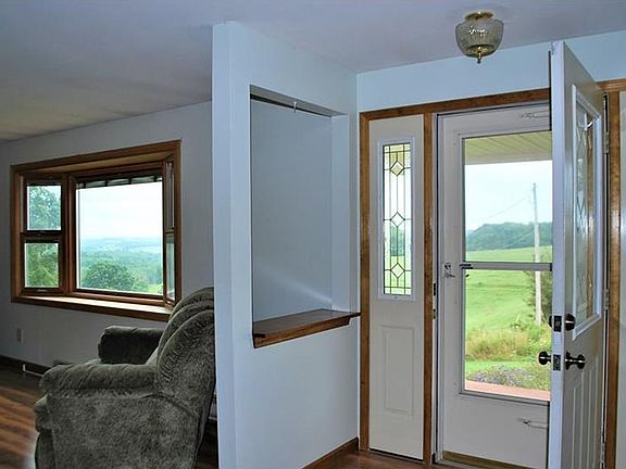 JUST ABOUT LIKE NEW AND EXTREMELY WELL KEPT! Beautiful kitchen with hard surface countertops and new backsplash plus lots of storage too! Pretty sunroom with composite decks, located just off the kitchen offers a wonderful place to enjoy the views or just read book! Enjoy the front views overlooking the valley from the bay window in the spacious living room. There is also a large foyer area with a closet. Master bedroom has access to the full bath and a closet organizer. Newer roof, windows, furnace/air and laminate "wood" floors through out. Partially finished lower level offers a walk out entry, huge laundry area, large unfinished area, plus a 3/4 finished family room with a stone wall and ready-to-finish fireplace, plus extra high ceilings! The 2-door/3 bay width garage is absolutely perfect! Many fruit trees and plenty of room for a garden too! 3 acres of country living!