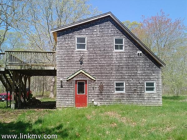 On a lovely parcel down Great Plains Road is a 2 bedroom log cabin style cape home. Open living kitchen area with a great covered porch and privacy. Also on this lot is a recently renovated studio apartment atop a beautiful one bay detached garage. The studio has beautiful new French doors and is bright and airy. Features includes full bathroom, spacious deck, washer/dryer hook up and separated driveway from main house. This is a great set up for an at home business or overflow space. A truly great opportunity to own in a great neighborhood in West Tisbury.