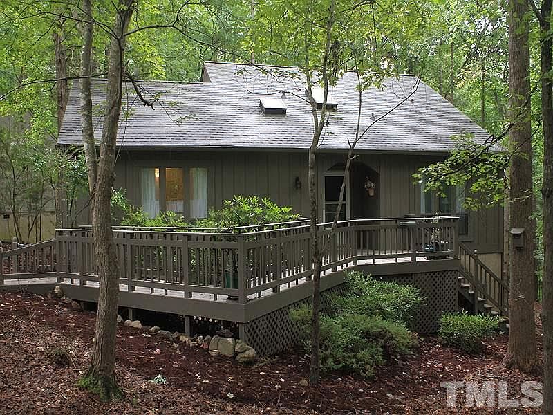 Located in quaint Fearrington Village just a short drive to UNC, is this charmer. The private wooded setting fits perfectly with the rustic architectural style. Light-filled rooms, with mainly 1st flr living plus finished lower level w/bonus room or private office & separate entrance, 1/2 bath and a large laundry room or workshop. Laundry connections also available in kitchen nook. Outdoor spaces for entertaining include screened porch, deck, front porch & patio. Wood parquet floors. Lots of updating.
