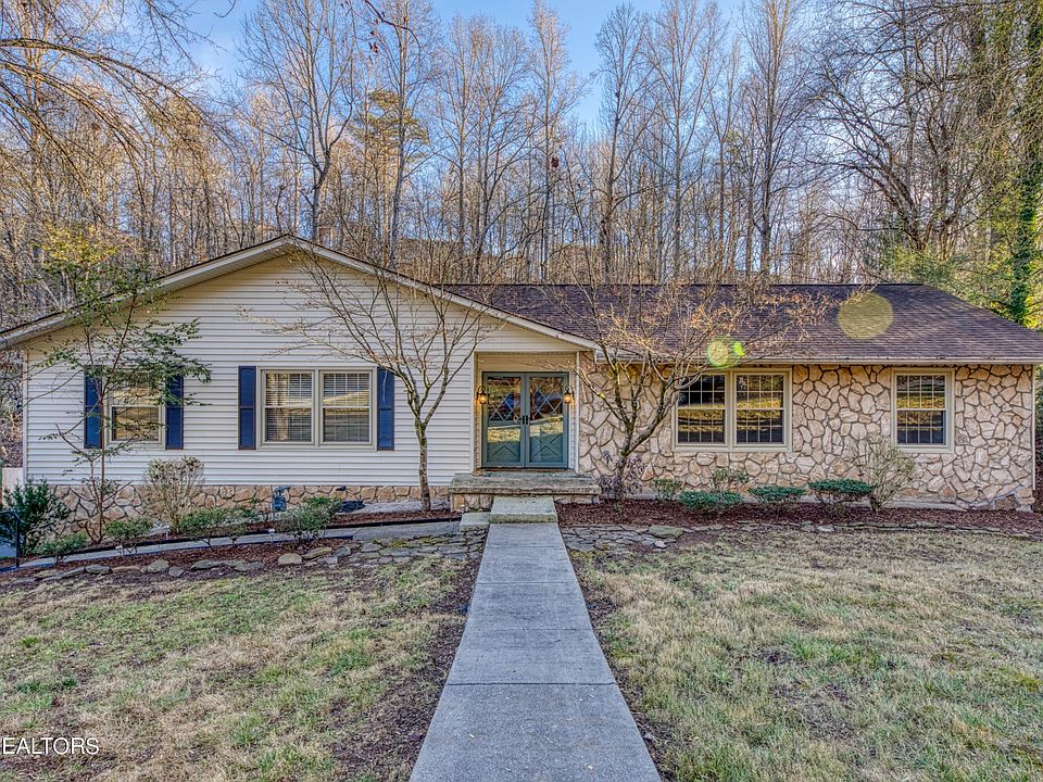 Basement ranch home in Oak Ridge's Country Club Estates with over 2800 square feet of versatile living space on 0.71 acre lot. The recent kitchen updates elevate its charm and functionality with new cabinetry, granite countertops, tile backsplash & stainless steel appliances. An ideal layout for entertaining! Other main level features include a primary bedroom with dual closets & bath ensuite with granite counters, dual vanities, and a walk-in shower. The additional two bedrooms and two full baths provide a comfortable space for everyone. The sunroom, expansive covered porch and covered back patio extend your outdoor living space to enjoy the natural wooded views and fire pit. A highlight of this home is the lower level which offers a recreation room complete with a wet bar and built-ins, a media room/flex room (currently used as a bedroom), presenting flexible options - including the potential for additional living quarters. Storage won't be a concern with a spacious walk-in storage room ensuring ample space for all your belongings. Noteworthy features include new fence in backyard, new carpet in bedrooms, LVP throughout the main level & sunroom, whole house attic fan, two gas log fireplaces, efficient vinyl replacement windows, original wood shutters in living room & primary bed/bath.