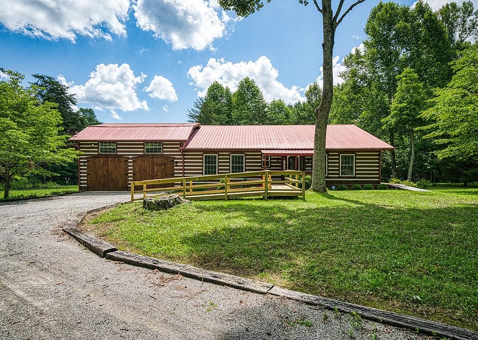 Come enjoy country living at its best in this beautiful log cabin home on 2.49 acres abundant in wildlife. This home boasts 3 bedrooms and 2 full bathrooms, 3 fireplaces, tongue and grooved raised ceiling, a 2 car attached garage with a workshop, a security system and more. Exterior features include a newly installed handicap accessible ramp, a hot tub and a wrap around porch. Buyer and buyer's agent to verify square footage and all information to make an informed offer.