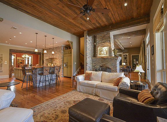 Madisonville's best kept secret. Private park like sanctuary in the heart of activity. Giant screened in back porch overlooking heated pool, spa, and sports barn. Antique brick, cypress beams, and pine floors combine to create cozy living experience. 10 acres of paradise with a fully stocked pond, indoor basketball goal, game room, & incredible storage facilities. Open floor plan perfect for entertaining or spending time with family.