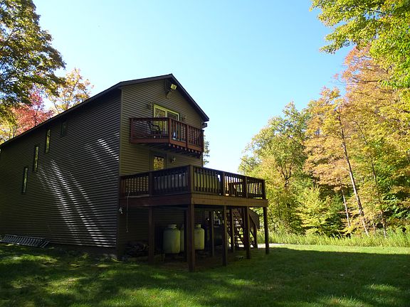 Spacious Old Forge Home with Lakerights This large year-round home will give you plenty of room to spread out. The ground floor offers a bonus room, a workshop and a two car garage. The main floor has a spacious deck with a hot tub, a dining-room, a kitchen, a living-room and a half bath with laundry. The second floor has two large bedrooms with a shared bath and a wonderful Master bedroom with a private deck, plenty of closet space and a full bathroom. New Siding! Lake Rights to Hollywood Hills Beach and boat launch.