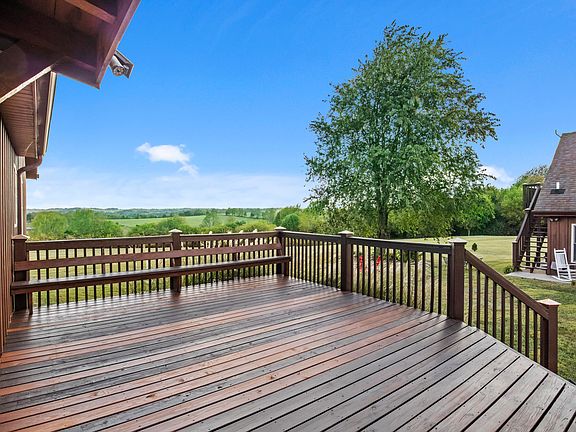 Beautiful log home located in one of the most charming and historic small towns in the South. Home of Centre College one of the top Universities in the US. This beautiful home sits on 10 meticulously manicured acres, stunning views in every direction. Property is less than 2 miles from Herrington Lake! This 5 BR 5 Full bath home features huge covered porch, great for entertaining! Two story living room with a spectacular wood burning fireplace! Two Primary bedrooms, full finished basement. Charming detached mother-in-law suite steps away from the main home. minutes from Ephraim Mcdowell hospital, only 30 minutes to Lexington!, Geothermal!